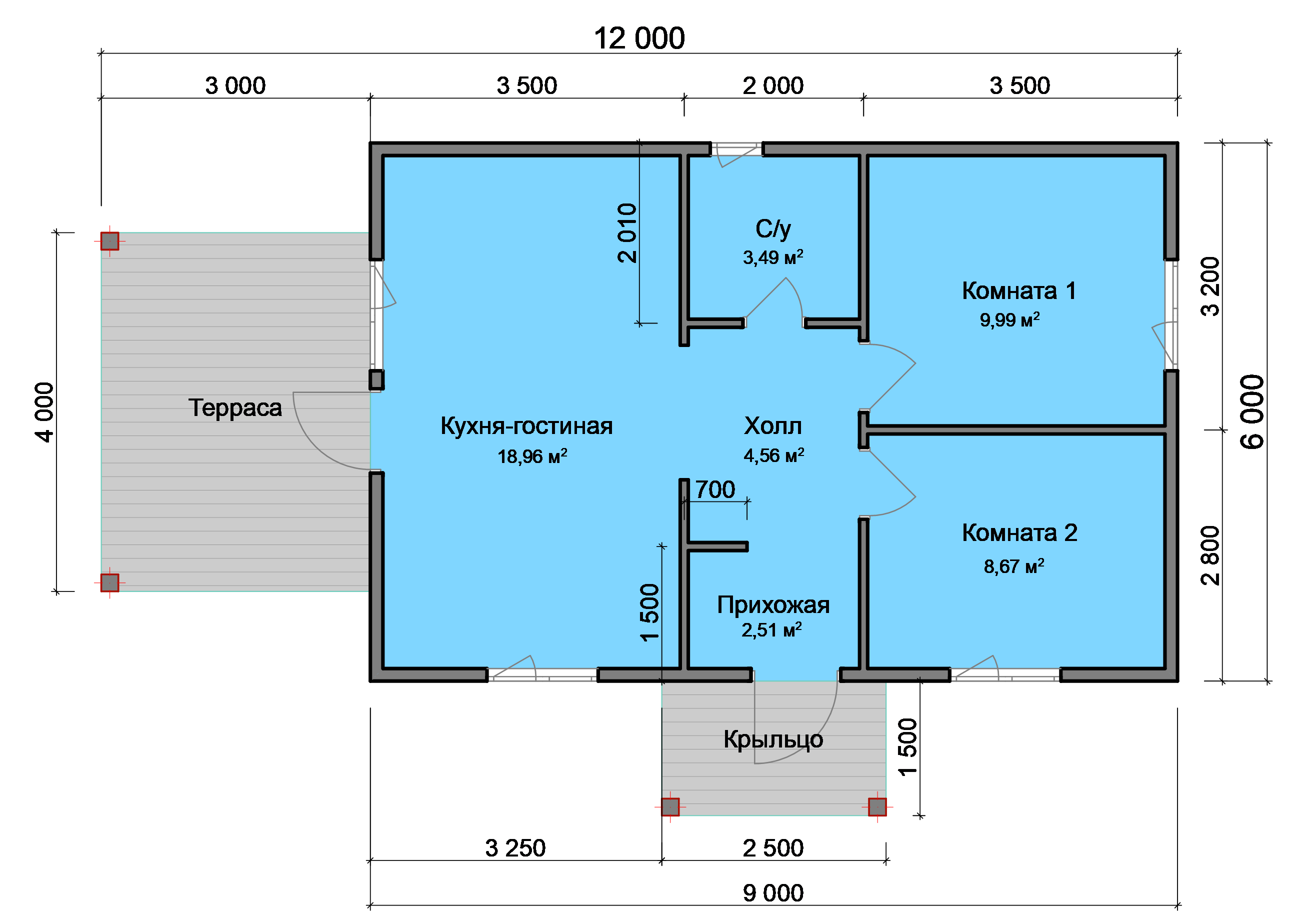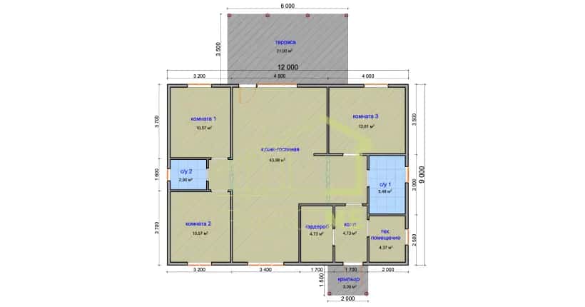 Размер: 9 х 7 м с террасой 3 х 1,5 м